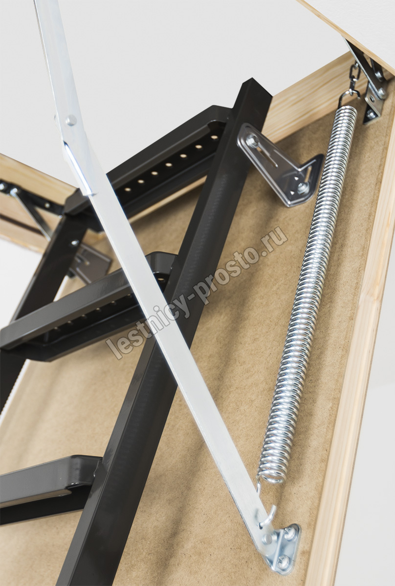 Чердачная металлическая лестница LMS – это надежная складная конструкция, состоящая из марша и термоизоляционной крышки, изготовленной из ДВП и окрашенной в бежевый цвет. Герметичность всей конструкции достигается благодаря утеплению крышки люка и контурному уплотнению по периметру, что предотвращает возможные теплопотери. Чердачную лестницу очень легко разложить и сложить благодаря наличию специального стержня с четырехугольной насадкой. Установленные в лестнице угловые петли-шарниры нового образца придают ей высокую прочность и надежность, а также предохраняют короб от возможной деформации. Основное преимущество чердачной складной металлической лестницы LMS сводится к ее небольшим габаритам при сохранении высокой функциональности, прочности, надежности и эстетичности конструкции. Монтировать лестницу очень просто, для этого не придется затрачивать много времени и сил. Применение лестничной конструкции этого типа позволяет существенно экономить пространство. Монтажный комплект LXK в комплекте не поставляется.