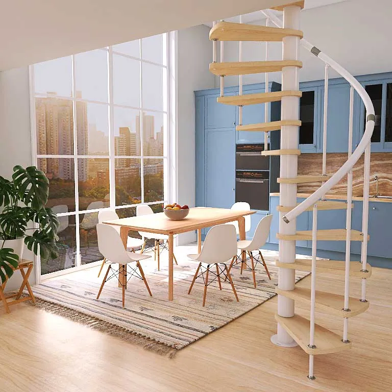 Короб из металла, белого цвета. Крышка лестницы выполнена из ДСП древесного цвета.