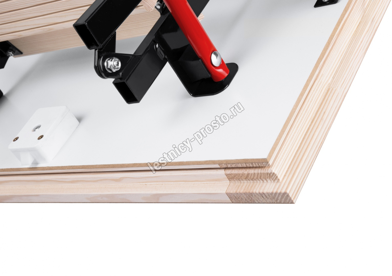 Складная 4-х секционная чердачная лестница. Ступени выполнены из сосны, имеют противоскользящие насечки, направляющие из металла