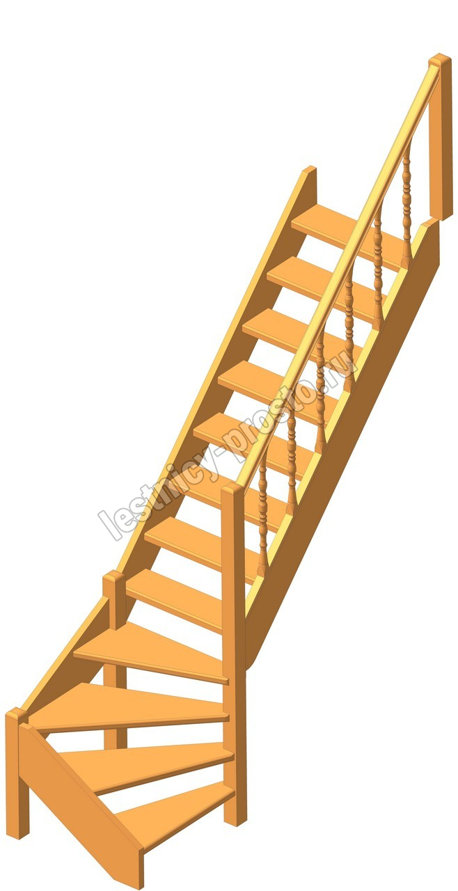 Деревянная межэтажная лестница ЛЕС-07 2470-2675 проем 2360-830, Лиственница