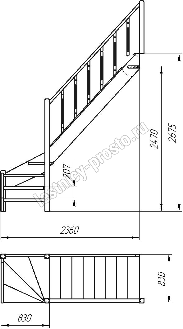 Высота лестницы 2470 - 2675 мм