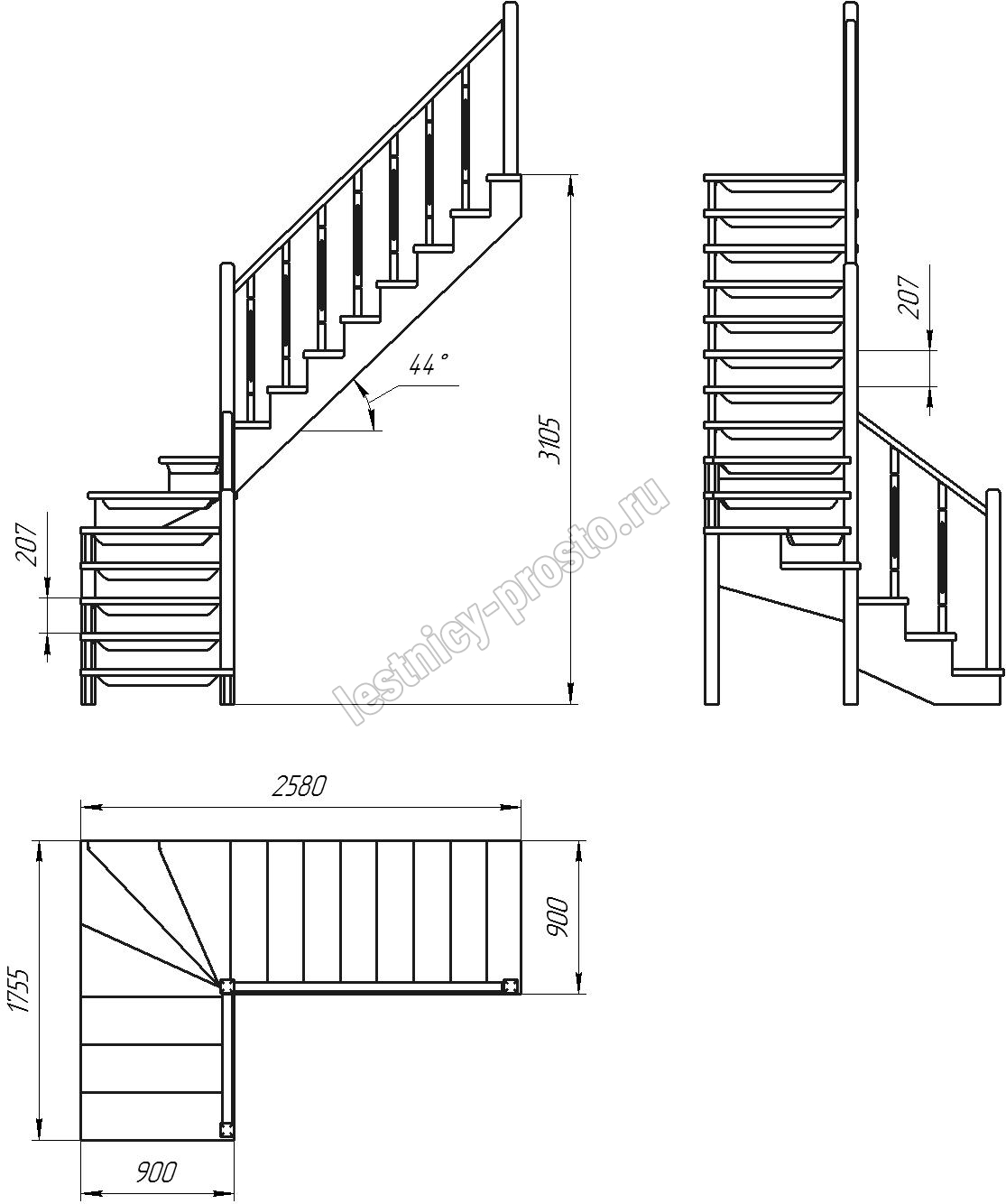 Высота лестницы 3105 мм