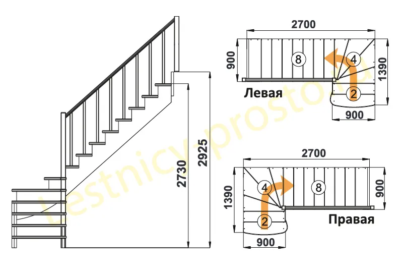 Высота лестницы 2730 - 2925