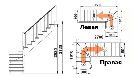 | Лестница из сосны К-001М/2 под покраску с подступёнками |