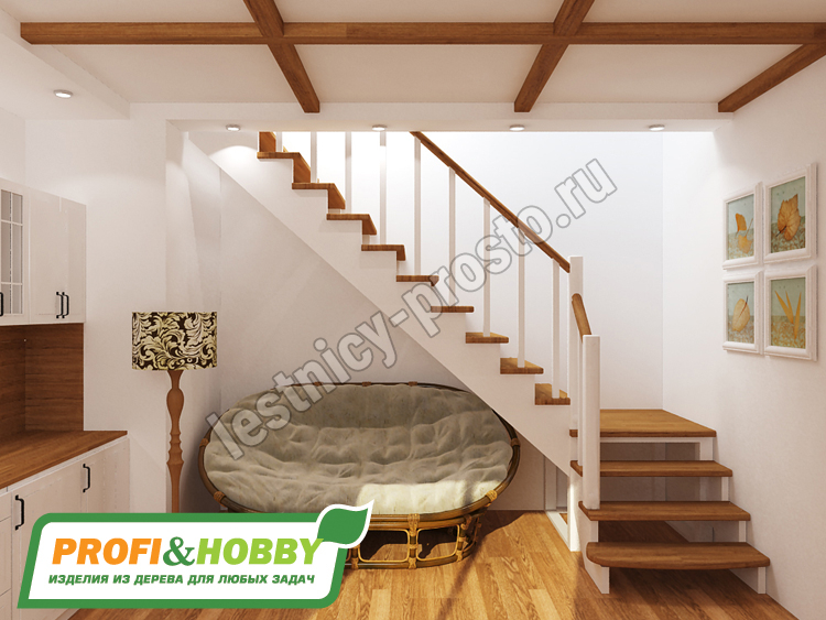 | Лестница из сосны К-002М/1 с подступёнками под покраску |