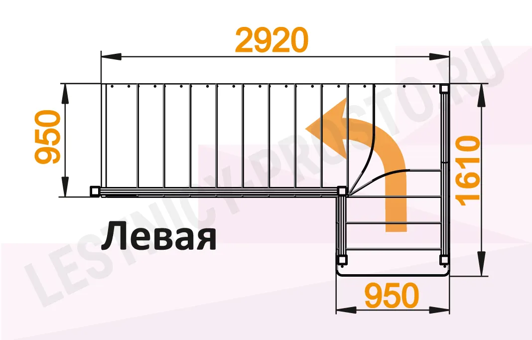 Схема лестницы К-032М с поворотом налево