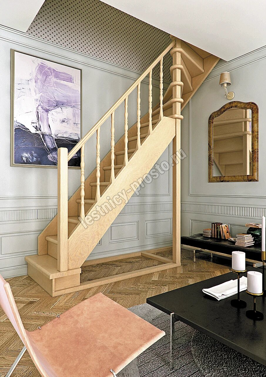 Лестница поставляется в разобранном виде. Базовый комплект включает в себя деревянные элементы лестницы и ограждения без какого-либо покрытия. Вы можете заказать у нас покраску лестницы в цвета, отвечающие особенностям вашего помещения.