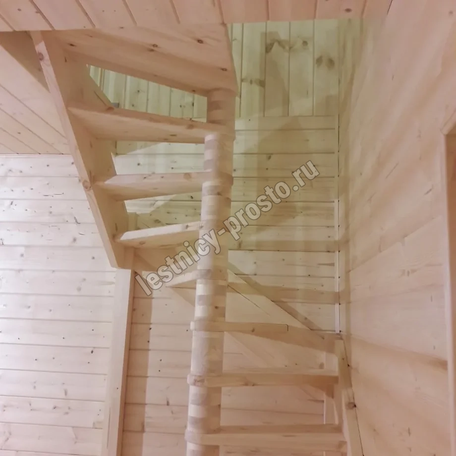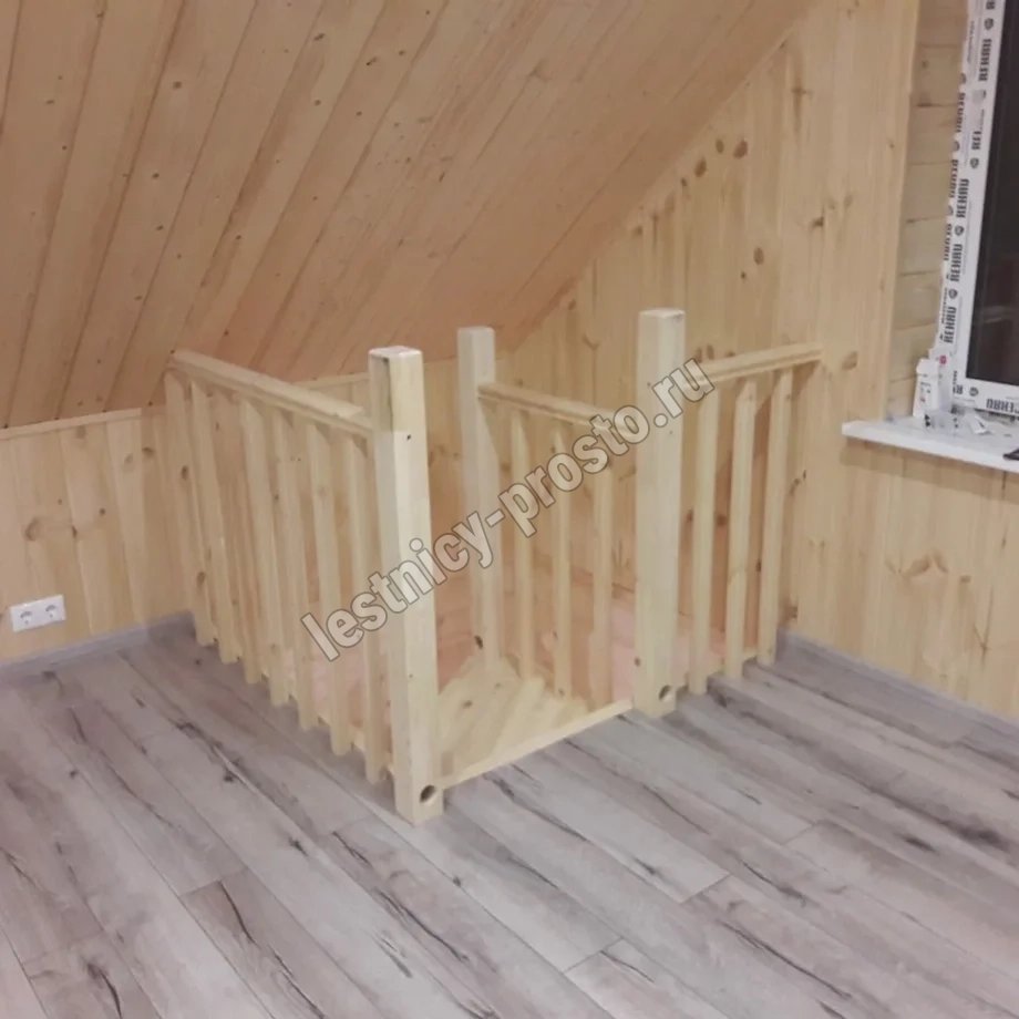 Небольшая аккуратная лестница, хорошо подойдет для помещения с небольшим проемом, поможет сэкономить пространство и организовать комфортный подъем на уровень выше. Возможны варианты лестницы из сосны под покраску, сосны, дуба, бука или ясеня. Для увеличения срока эксплуатации мы рекомендуем покрыть элементы лестницы защитным средством. Вы можете сделать это самостоятельно или заказать предварительное покрытие необходимым средством (или тонирование) в нашем цеху.