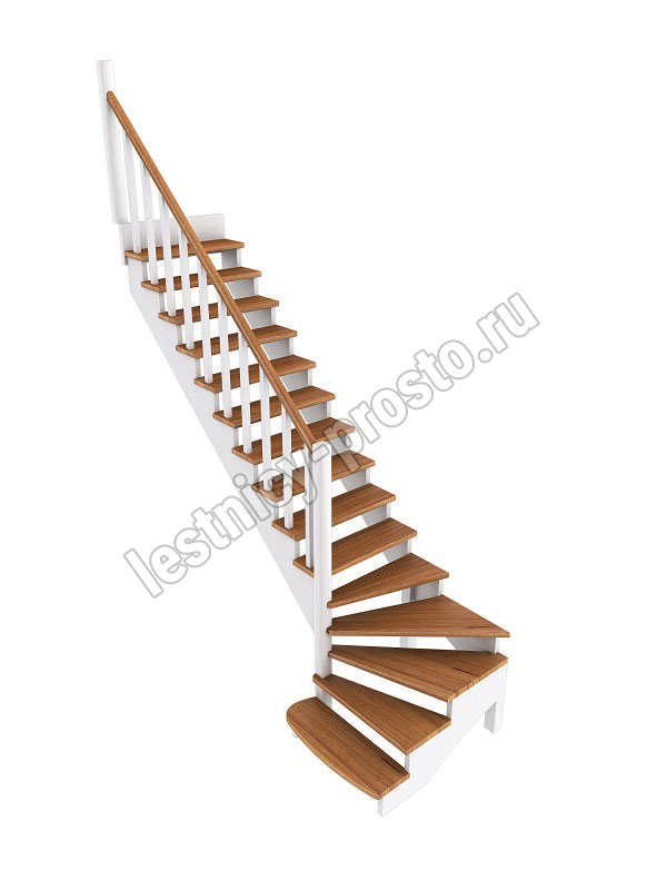 Ступени и поручень лестницы изготовлены из дуба, остальные элементы из сосны. Возможно изготовление модели полностью из дуба. Базовый комплект включает в себя деревянные элементы лестницы и ограждения без какого-либо покрытия. Вы можете заказать у нас покраску лестницы в цвета, отвечающие особенностям вашего помещения.