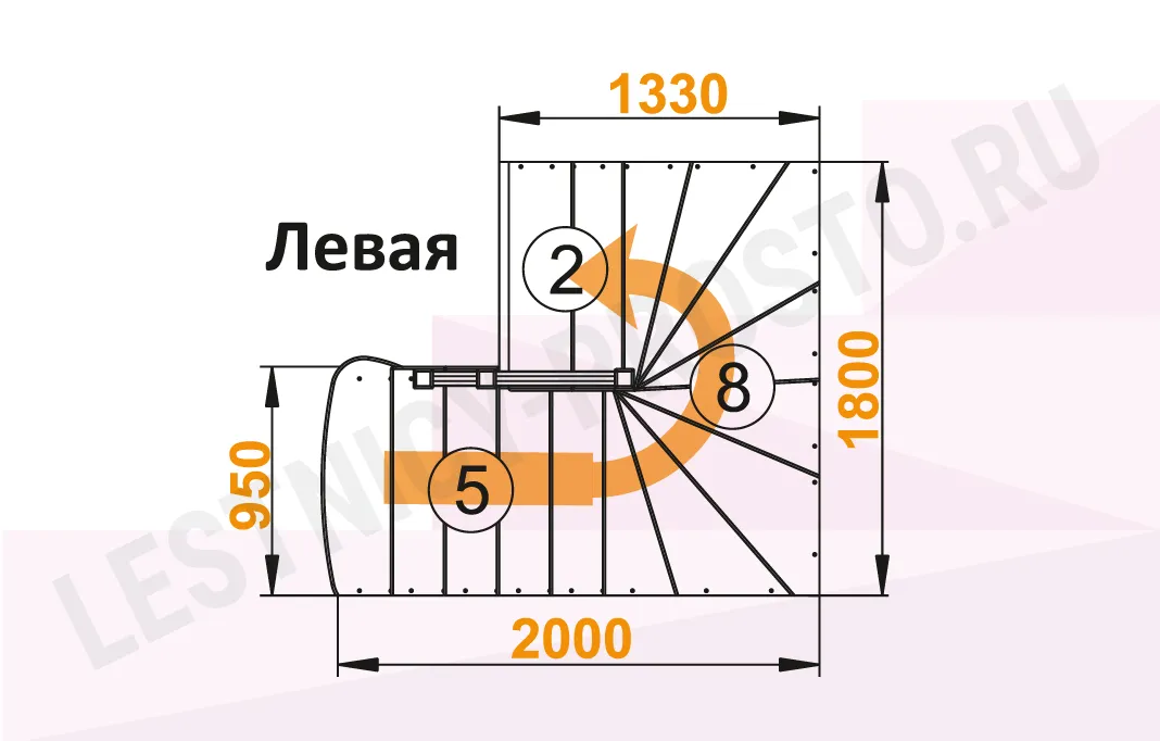 Лестница К-003М/3 с поворотом налево