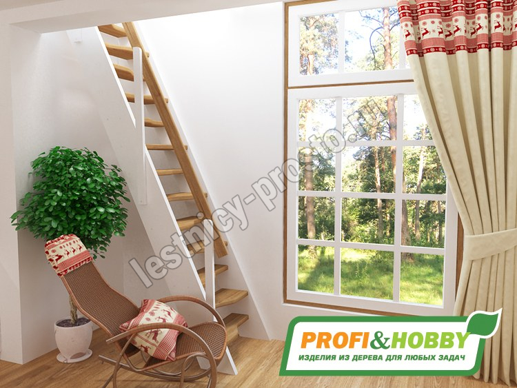 Ступени и поручень лестницы изготовлены из дуба, остальные элементы из сосны.
