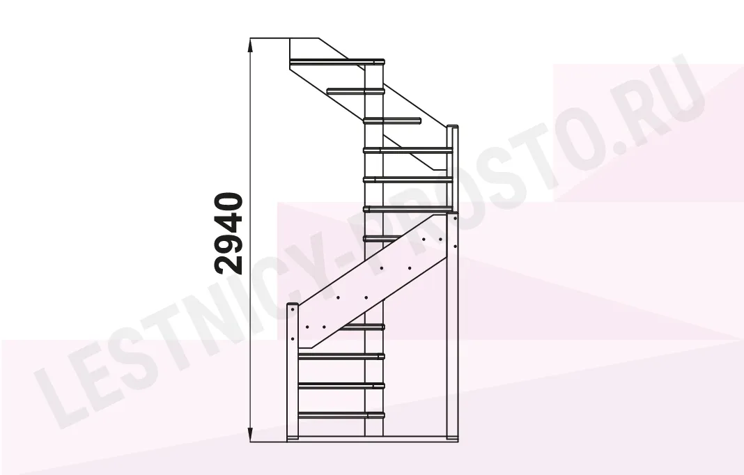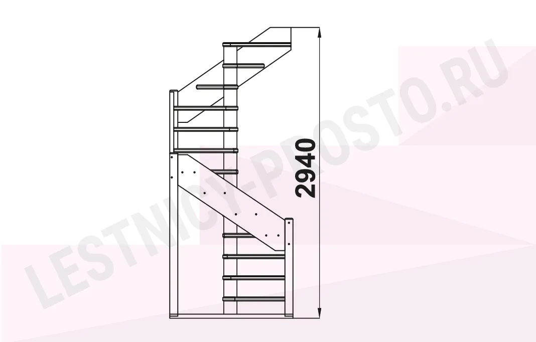 Ступени и поручень лестницы изготовлены из дуба, остальные элементы из сосны.