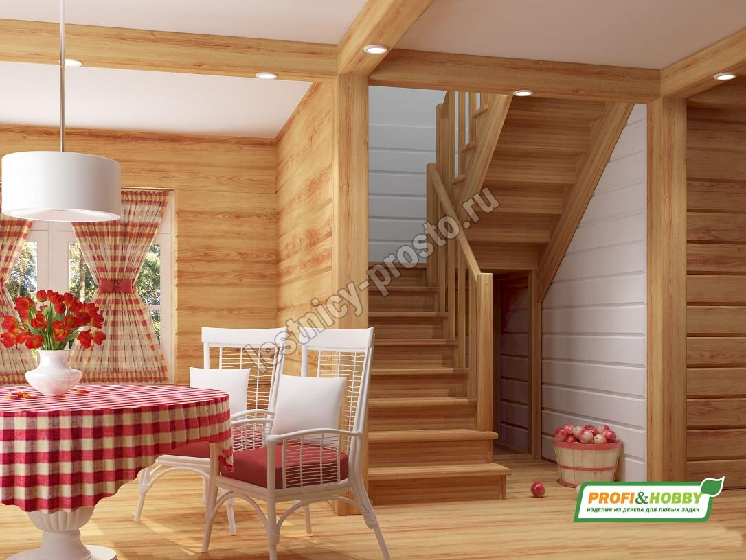 Лестница из сосны К-004М/2 с подступёнками