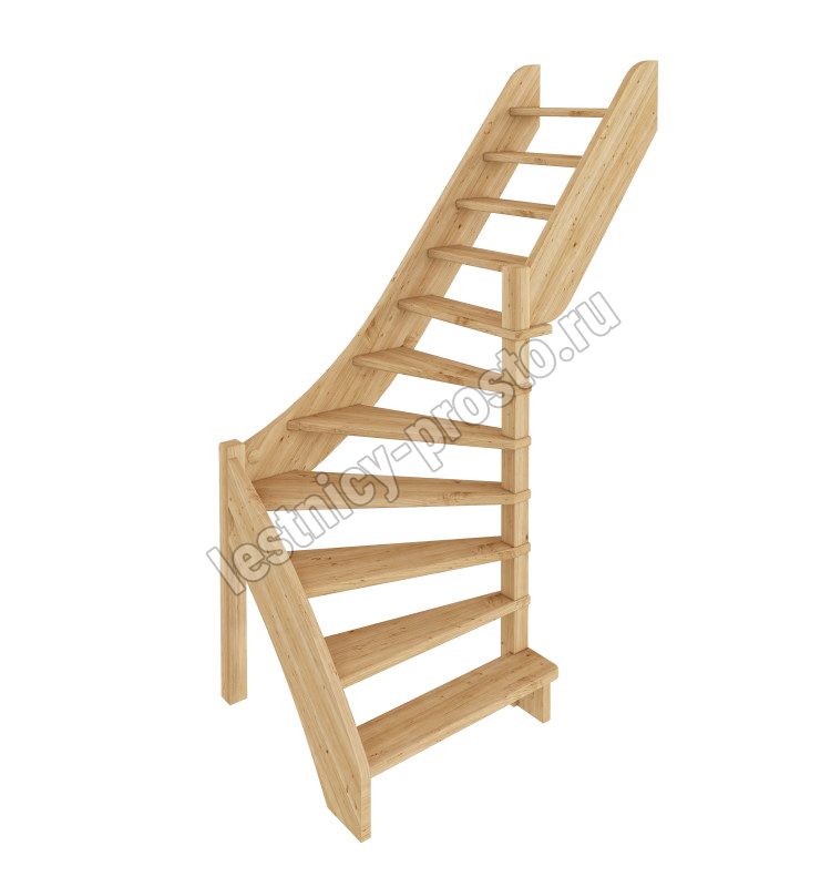 Базовый комплект включает в себя деревянные элементы лестницы без какого-либо покрытия.