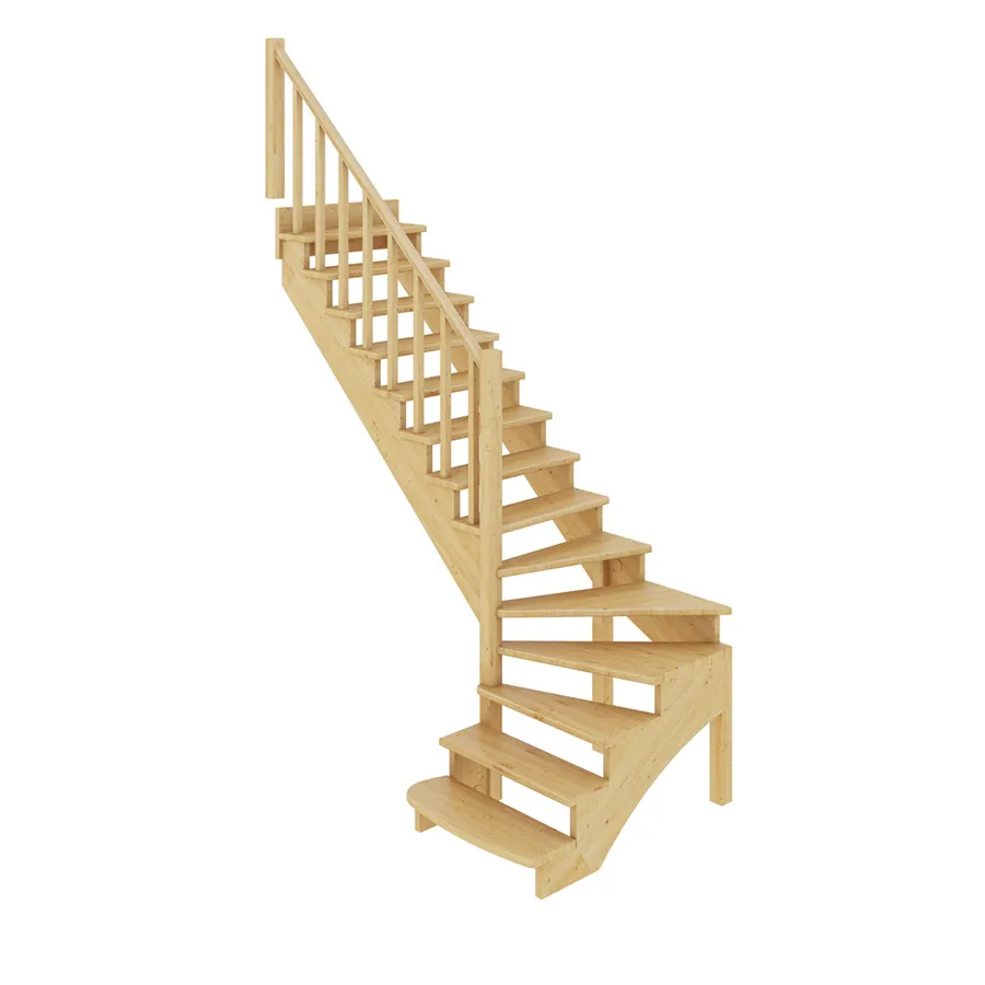 Ступени и поручень лестницы изготовлены из ясеня, остальные элементы из сосны.