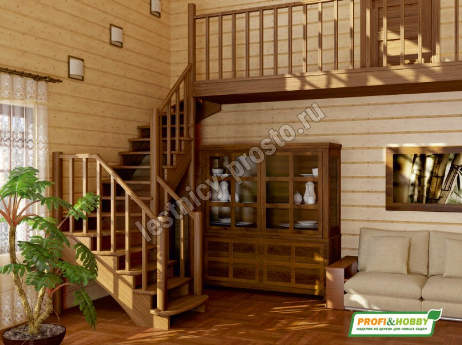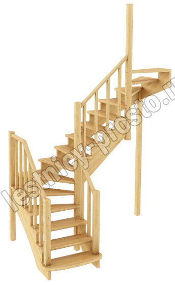 Ступени и поручень лестницы выполнены из ясеня, остальные элементы из сосны.