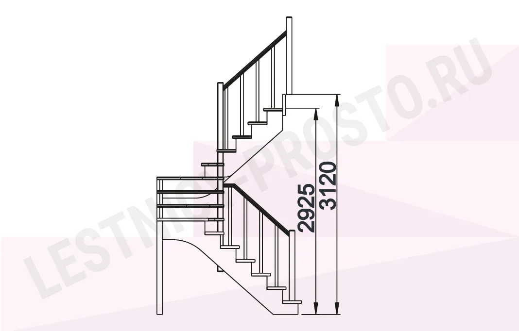 Базовый комплект включает в себя деревянные элементы лестницы и ограждения без какого-либо покрытия.