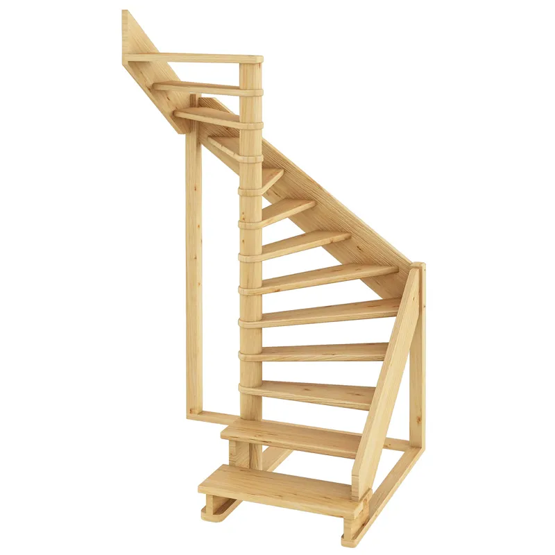 Ступени и поручень лестницы изготовлены из ясеня, остальные элементы из сосны.