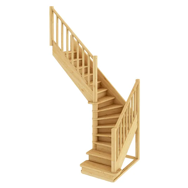 Базовый комплект включает в себя деревянные элементы лестницы с подступёнками и ограждение без какого-либо покрытия.