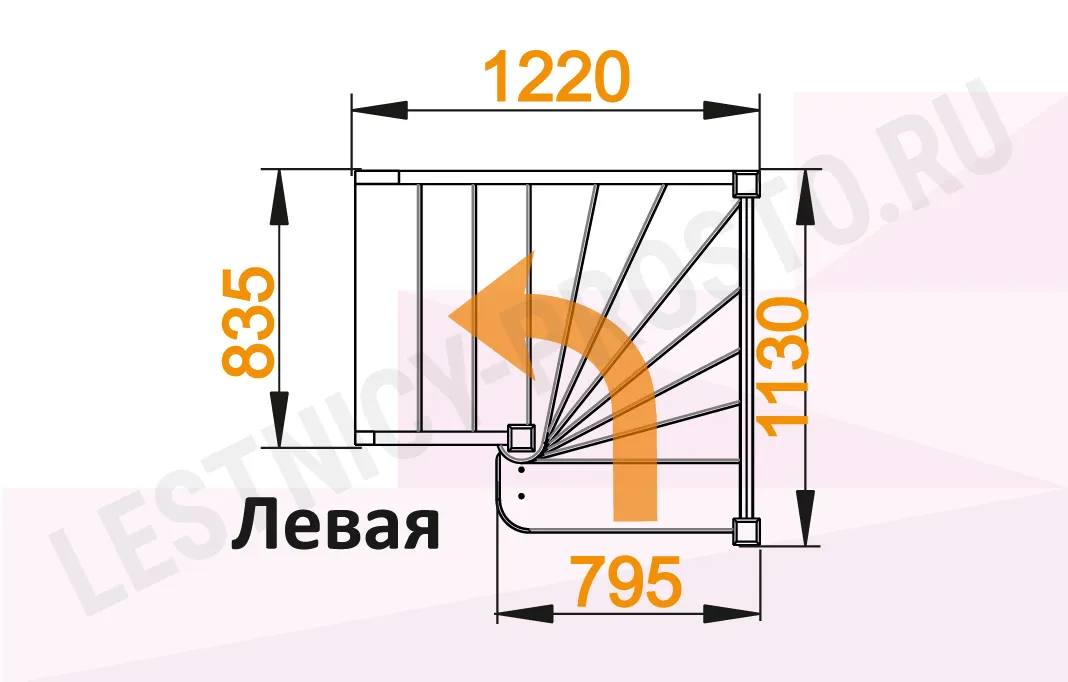 Схема лестинцы ЛС-91М с поворотом налево