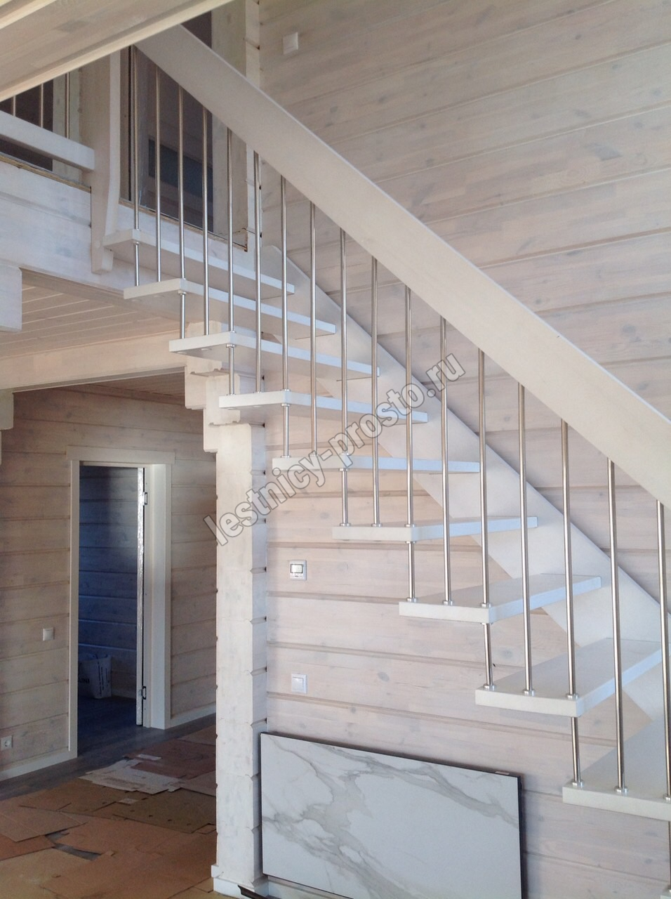 Надёжная современная лестница выполнена по немецкой технологии. Стоимость указана для лестницы с ограждением (с одной стороны); Поставляется в разобранном виде, в комплекте необходимый крепёж; Лестницу можно собрать самостоятельно; Так же, вы можете заказать услугу монтажа нашими специалистами; 4 вида породы дерева для изготовления лестницы: сосна, бук, ясень, дуб; возможна комбинированная лестница: из сосны (ступени бук, ясень, дуб); Деревянные элементы без какого-либо покрытия, отшлифованы, готовы к покраске. За дополнительную плату, вы можете изменить любые параметры, а именно: увеличить глубину ступени; увеличить ширину марша до 900 мм. и выше; заказать подступенки к лестнице; заказать отделку перекрытия (между 1-м и 2-м этажами); изготовить дополнительный промежуточный марш; заказать ограждение 2-го этажа; покраска в любой цвет или несколько цветов или покрытие защитными средствами; дополнение балясины из нержавеющей стали деревянными элементами; покраска балясин из нержавеющей стали порошковой краской в цвет RAL.