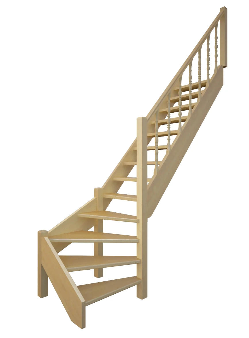 Все деревянные элементы изготовлены из древесины «экстра» без сучков. Лестница отшлифована и подготовлена под покраску, которая не включена в стоимость.