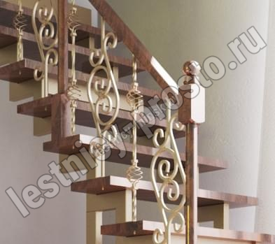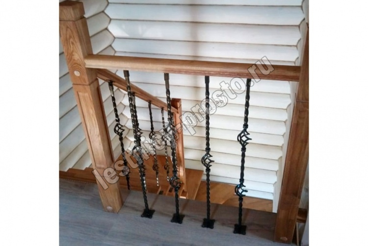Деревянные элементы: столбы и поручень в базовой комплектации без окрашивания и какого-либо покрытия, металлические элементы окрашены в цвет каркаса лестницы.
