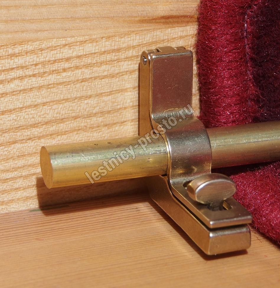 Ковродержатель комплектуется двумя держателями из латуни цвета золото, а также цельным прутком из латуни длиной от 101 до 130 см. Конструкция является сборно-разборной не требующей демонтажа креплений, что делает ее долговечной и очень удобной для чистки ковров и ковровых покрытий.