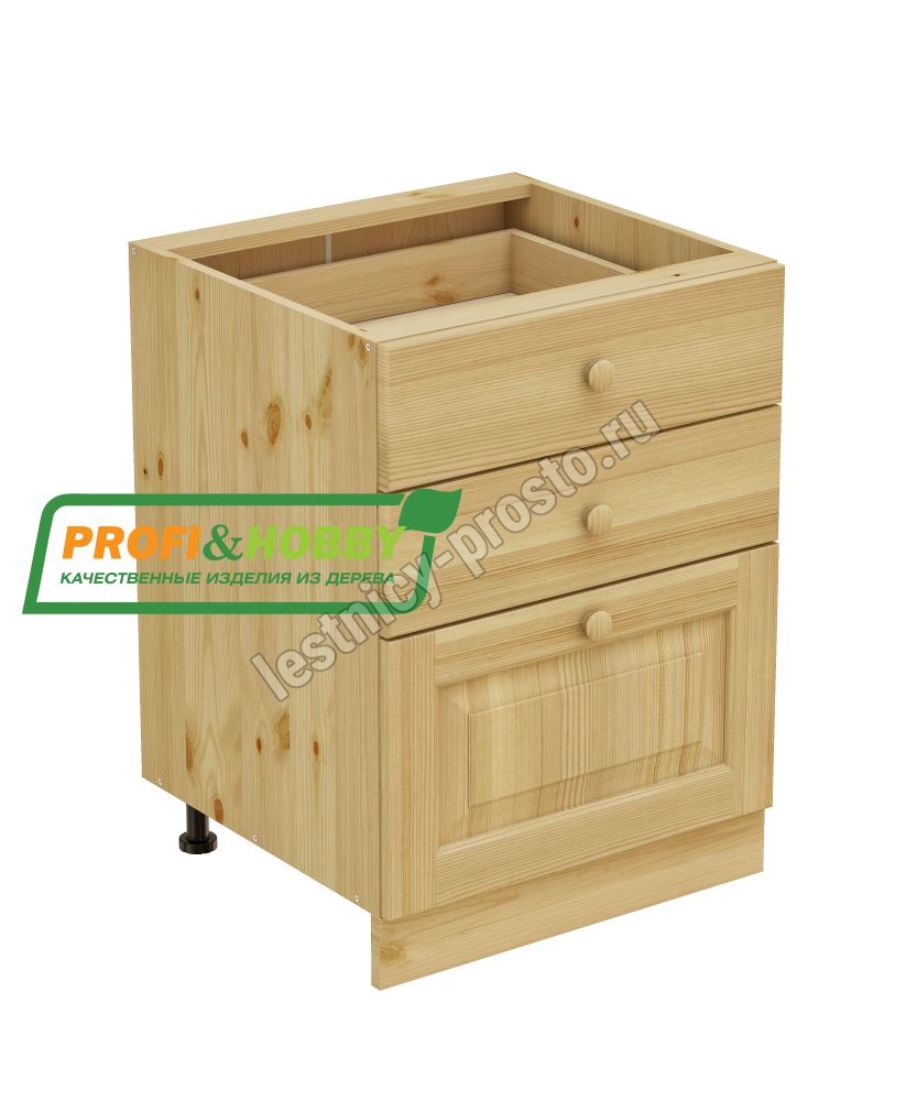 Тумба 3 ящика 600 х 560 х 720 сосна, без покраски