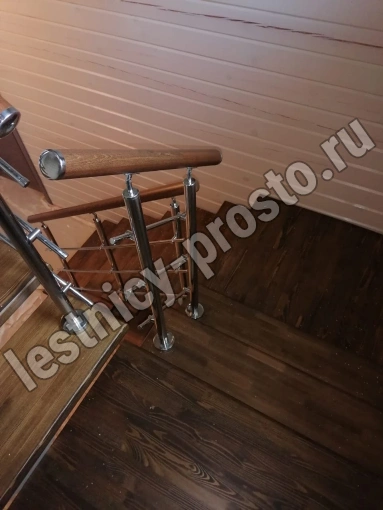 Конструкция представляет собой стальной монокосоур, на который крепятся ступени из выбранной породы дерева.