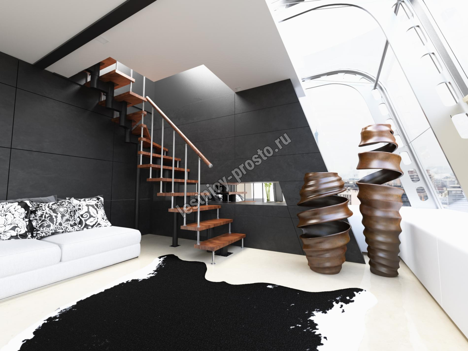 Модульная лестница PROSTO MODULE Г-образная, h225, лиственница