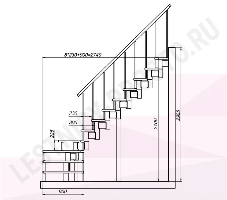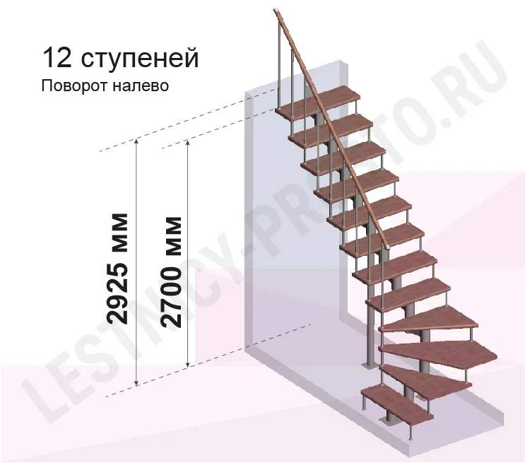 Высота лестницы 2700 - 2925 (12 ступеней) мм