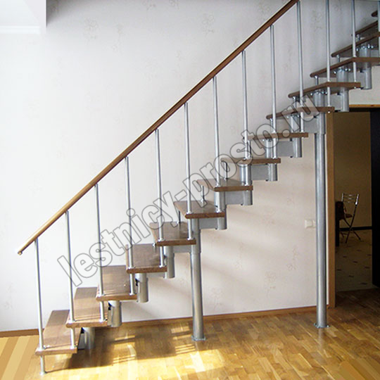 Каркас лестницы представляет собой набор модулей, которые комплектуются уже готовыми к монтажу.
