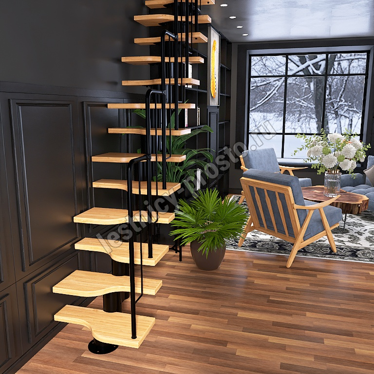 | Лестница Prosto Urban Black гусиный шаг 700 мм, h198-288 см (11 ступеней), бук |