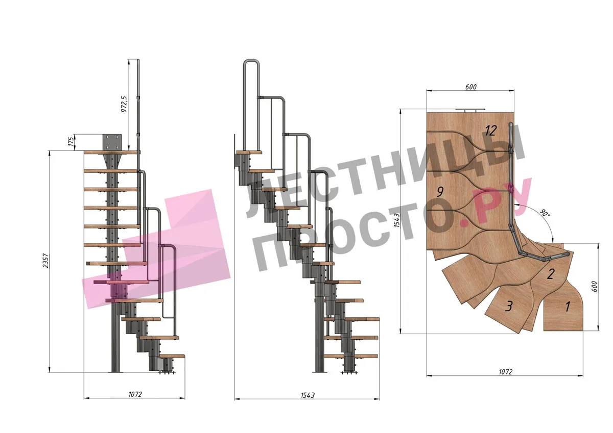 Высота лестницы 2160 - 3120 (12 ступеней) мм