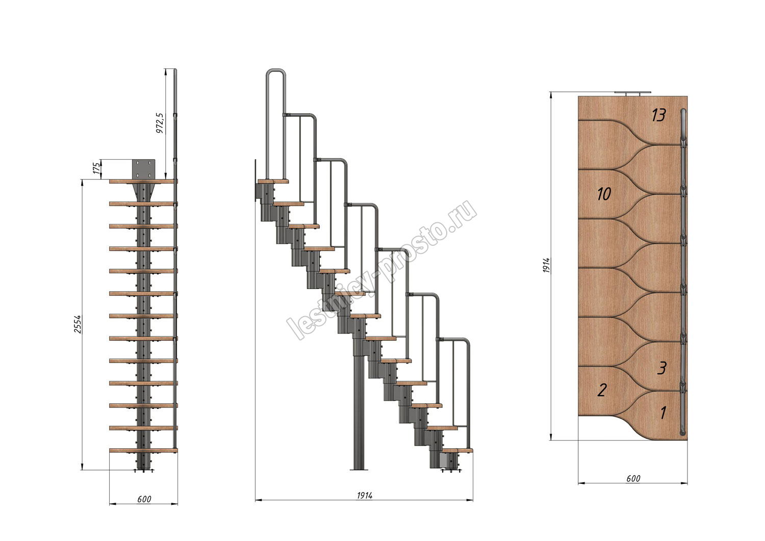Лестница Prosto Urban Black гусиный шаг 600 мм/ Ступени из берёзы мультиплекс