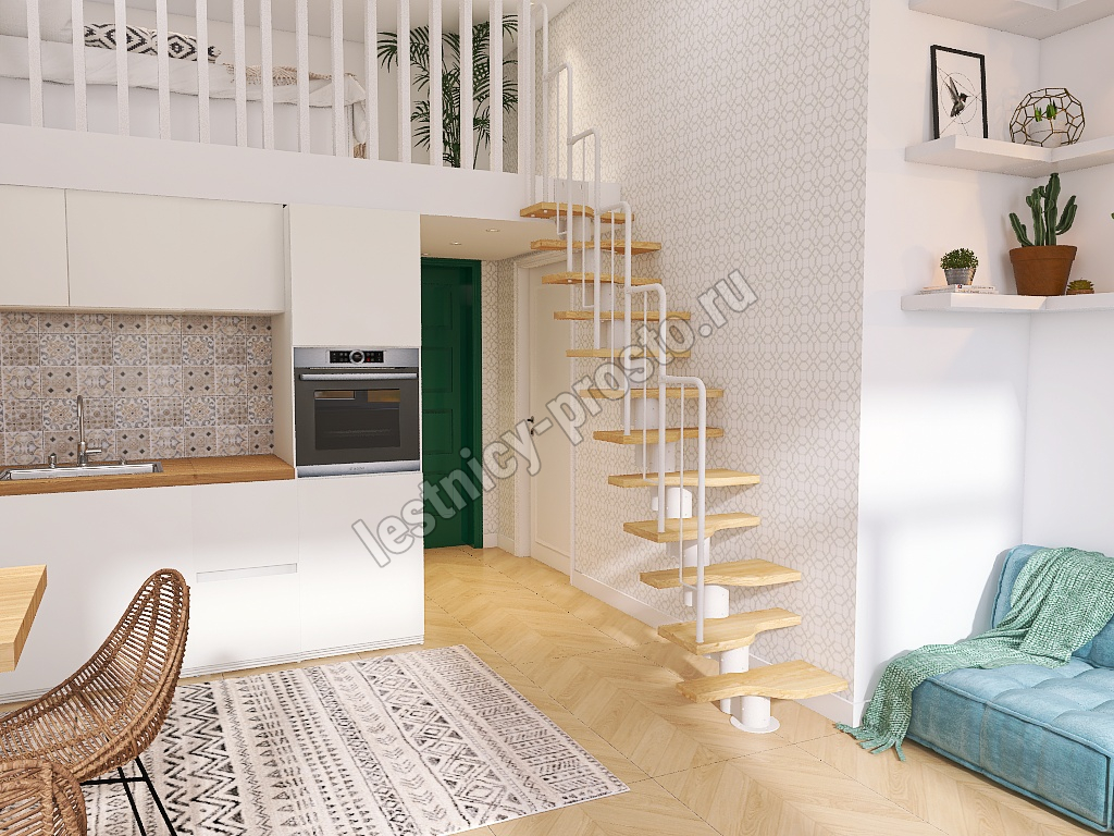 Лестница Prosto Urban White гусиный шаг 600 мм, h180-264 см (10 ступеней), бук