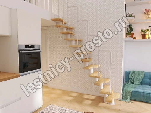 Лестница Prosto Urban White гусиный шаг 700 мм, h216-312 см (12 ступеней), дуб
