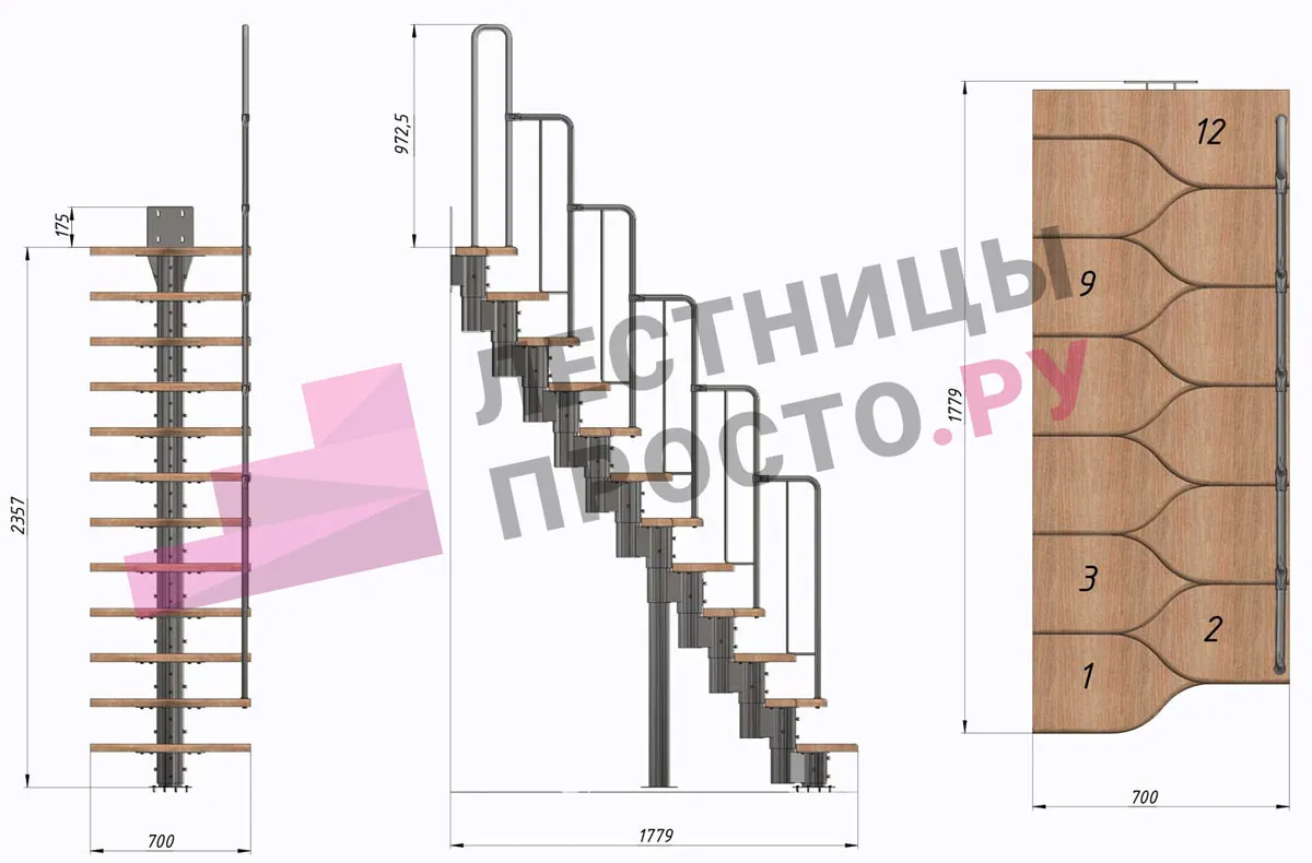 Высота лестницы 2160 - 3120 (12 ступеней) мм