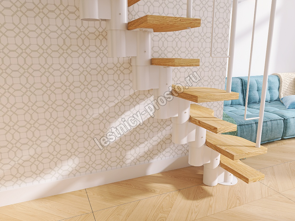 Лестница Prosto Urban White гусиный шаг 700 мм, h234-336 см (13 ступеней), берёза мультиплекс