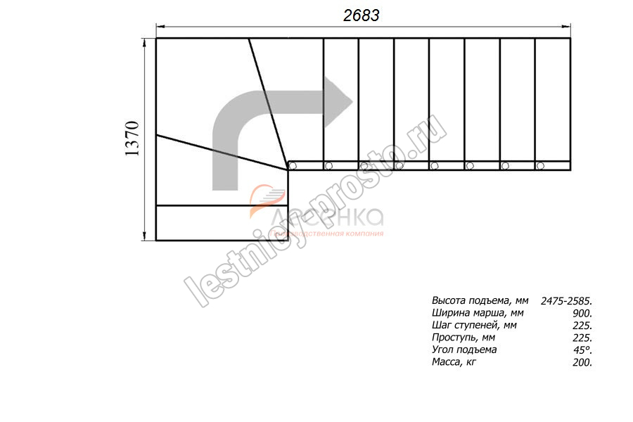 Высота лестницы 2475 - 2585 мм