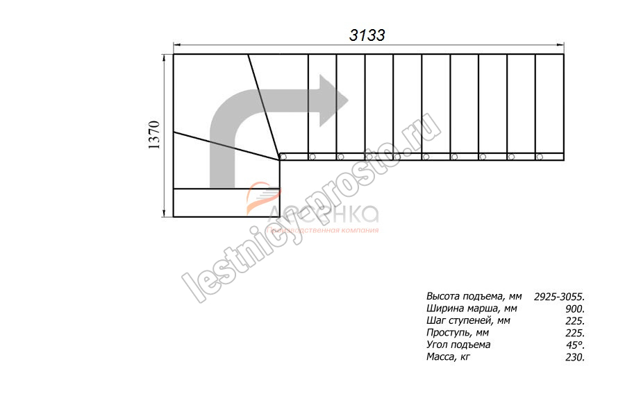 Модульная лестница Фаворит 225 2925-3055, Серый, Бук, Крашеная