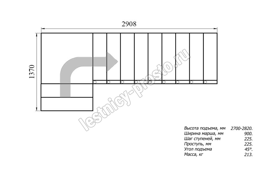 Модульная лестница Статус 225 2700-2820, Серый, Сосна, Нержавеющая сталь