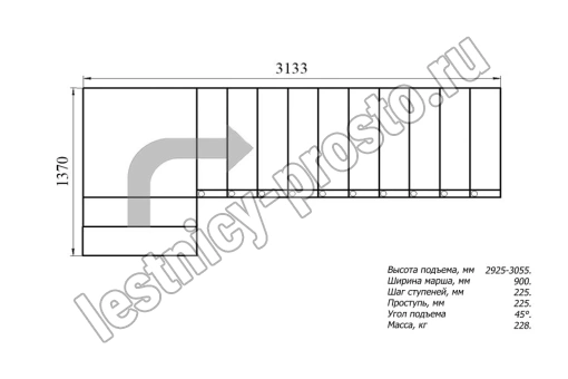 Модульная лестница Статус 225 2925-3055, Серый, Сосна, Крашеная