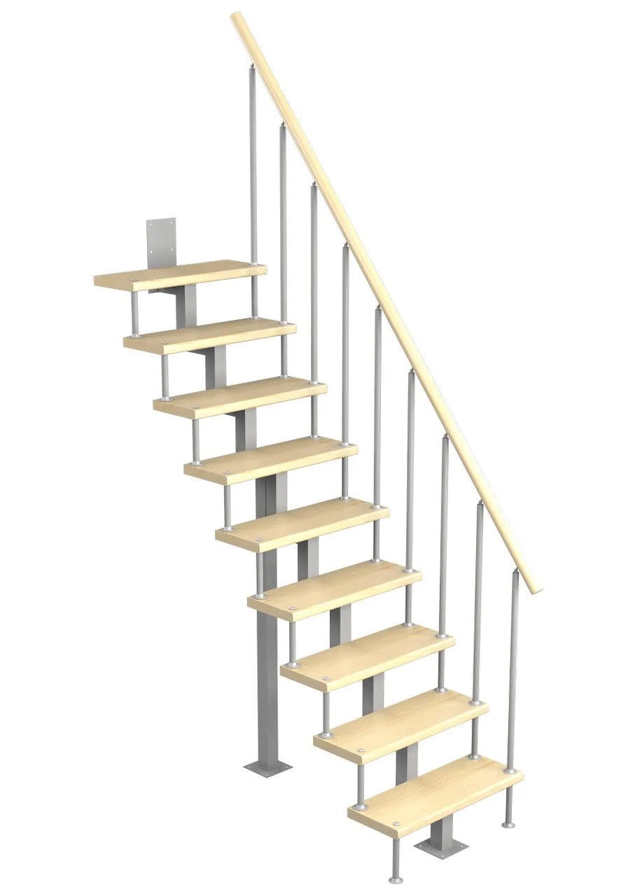 Модульная малогабаритная лестница Эксклюзив 2700-2925, Серый, Бук, Нержавеющая сталь