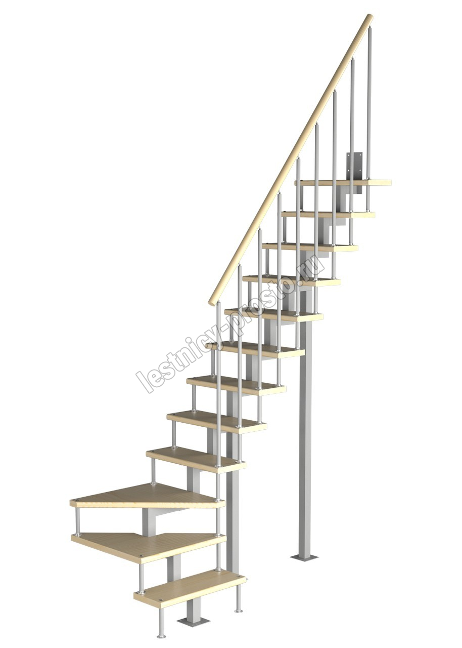 Модульная малогабаритная лестница Компакт 2700-2925, Белый, Лиственница, Нержавеющая сталь
