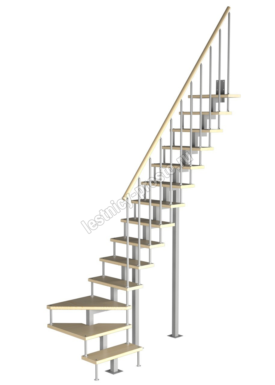 Модульная малогабаритная лестница Компакт 2700-2925, Белый, Сосна, Нержавеющая сталь