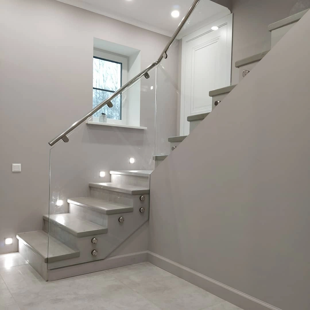 Ограждение из ударопрочного стекла, поручень и столбики из бука.
