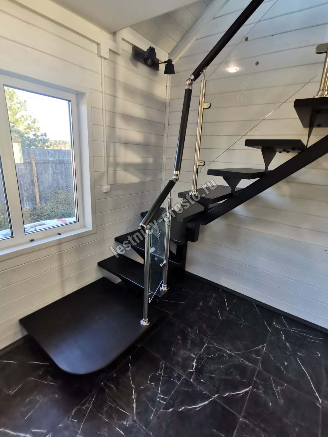 Ступени и поручень выполнены из срощенного бука.