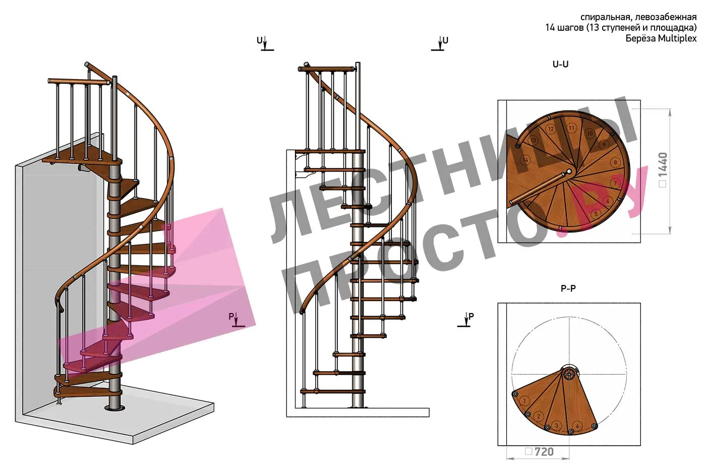 Решение об ориентации поворота лестницы принимается при сборке (комплект собирается и в правозабежную, и в левозабежную лестницу)